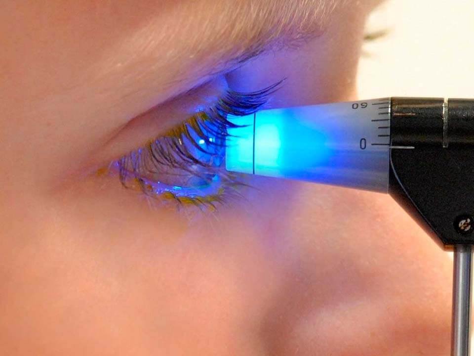 No caso da tonometria de contato, é aplicado um colírio anestésico para garantir o conforto do paciente.